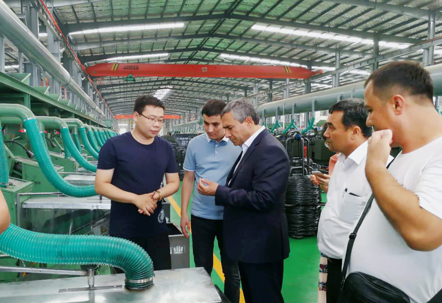 7月14日下午,烏茲別克斯坦KOKAND CITY州長 Usmonov Maruf蒞臨青龍劍釘業(yè)經濟開發(fā)區(qū)公司。青龍劍釘業(yè)總經理馬群澤熱情接待了到訪的Usmonov Maruf先生及隨行人員,并陪同Usmonov Maruf先生到車間進行參觀考察。
