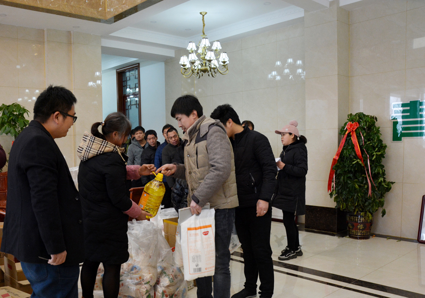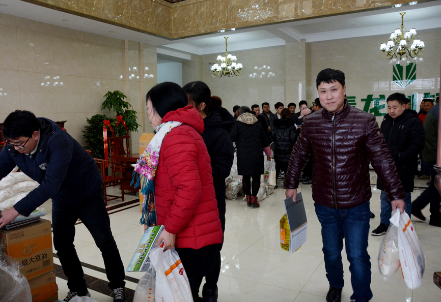 員工會議結(jié)束后,員工們領取公司為大家準備的福利。