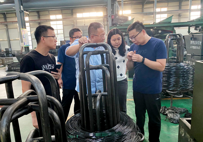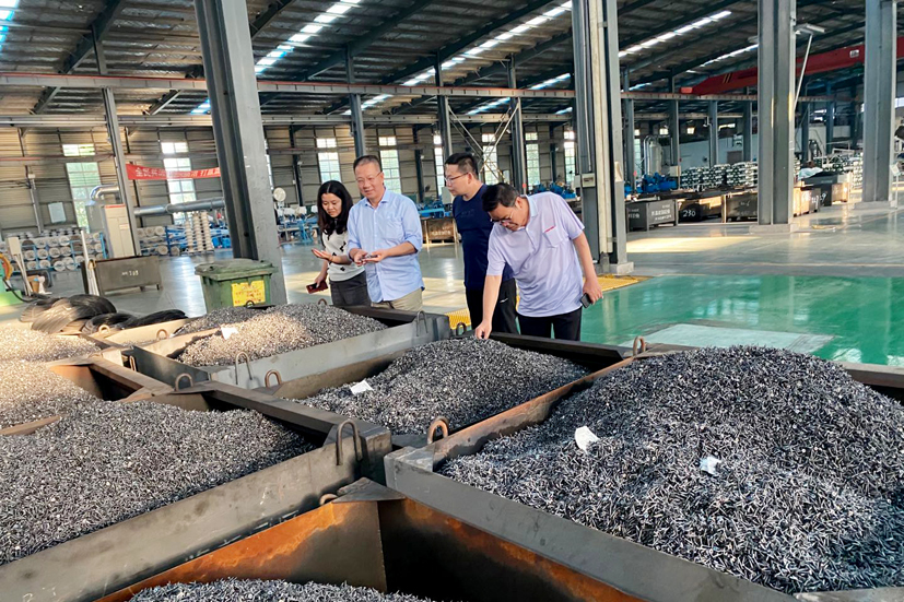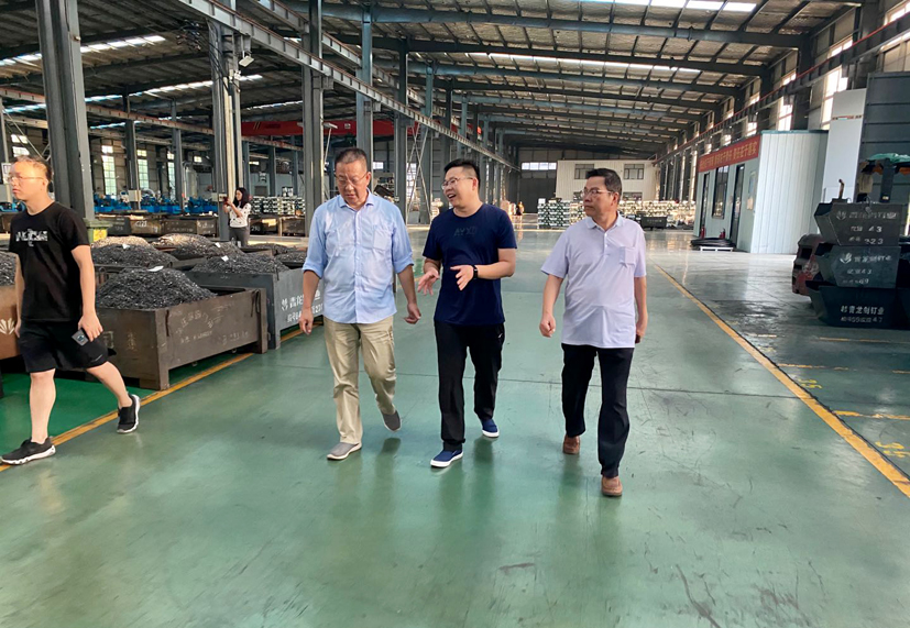 劉思敏博士在馬總及公司工作人員陪同下考察車(chē)間生產(chǎn)現(xiàn)場(chǎng)