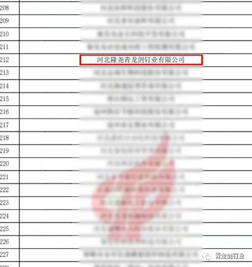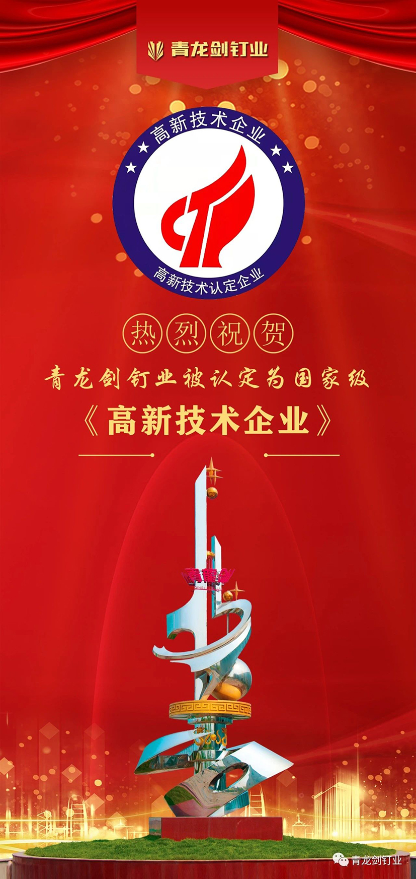 青龍劍釘業(yè)被認(rèn)定為國(guó)家級(jí)高新技術(shù)企業(yè)