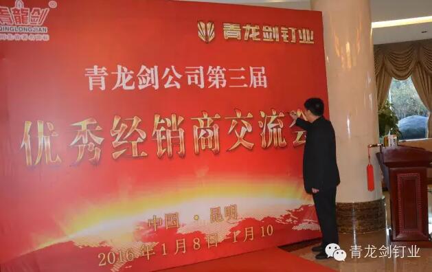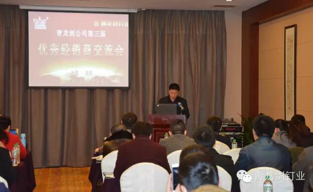 公司董事長(zhǎng)馬志華對(duì)全國(guó)經(jīng)銷商的到來表示誠(chéng)摯的感謝。——“感謝各位經(jīng)銷商來參加2016年度青龍劍公司第三屆優(yōu)秀經(jīng)銷商交流會(huì),歡聚一堂共同探討青龍劍釘業(yè)發(fā)展大計(jì)”。