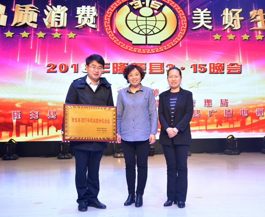 會(huì)上,發(fā)布了消費(fèi)警示,質(zhì)量抽檢通報(bào),并對(duì)群眾投訴名單進(jìn)行了曝光。隨后對(duì)誠(chéng)信經(jīng)營(yíng)企業(yè)做出表彰。期間播放了青龍劍釘業(yè)宣傳片,并為企業(yè)頒發(fā)了“隆堯縣2017年度誠(chéng)信示范企業(yè)”獎(jiǎng)牌。