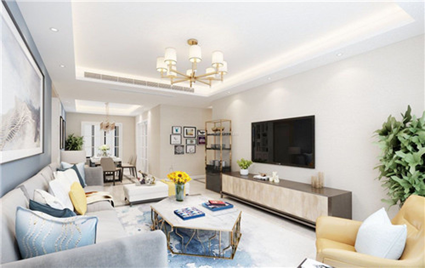 1. 背景墻作為客廳裝飾中的主體,在色彩搭配上,應(yīng)結(jié)合整體空間色調(diào)的和諧統(tǒng)一。如果背景墻和空間色彩不一致,很容易造成視覺上的落差感,造成情感的影響,其中白色、淺黃色等這類色系,在空間使用較為頻繁。