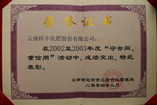 2002年度云南省質(zhì)量效益型先進企業(yè)