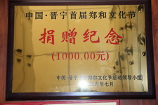 中國(guó)晉寧首屆鄭和文化節(jié)捐贈(zèng)紀(jì)念