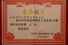 昆明地區(qū)工業(yè)企業(yè)100強(qiáng)排序中名列第67名