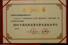 2010中國化肥質(zhì)量信譽先進標(biāo)兵單位