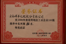 昆明地區(qū)工業(yè)企業(yè)100強名列第86名
