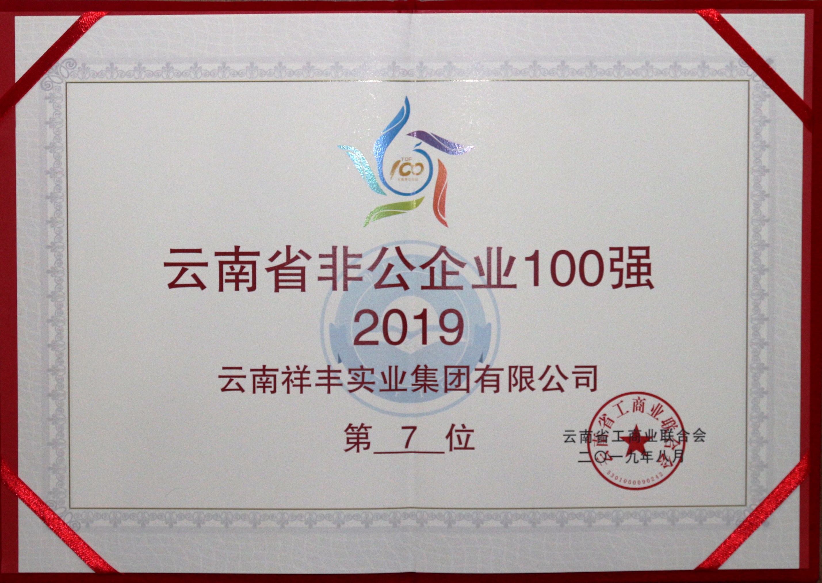 2019"云南省百戶優(yōu)強民營企業(yè)"