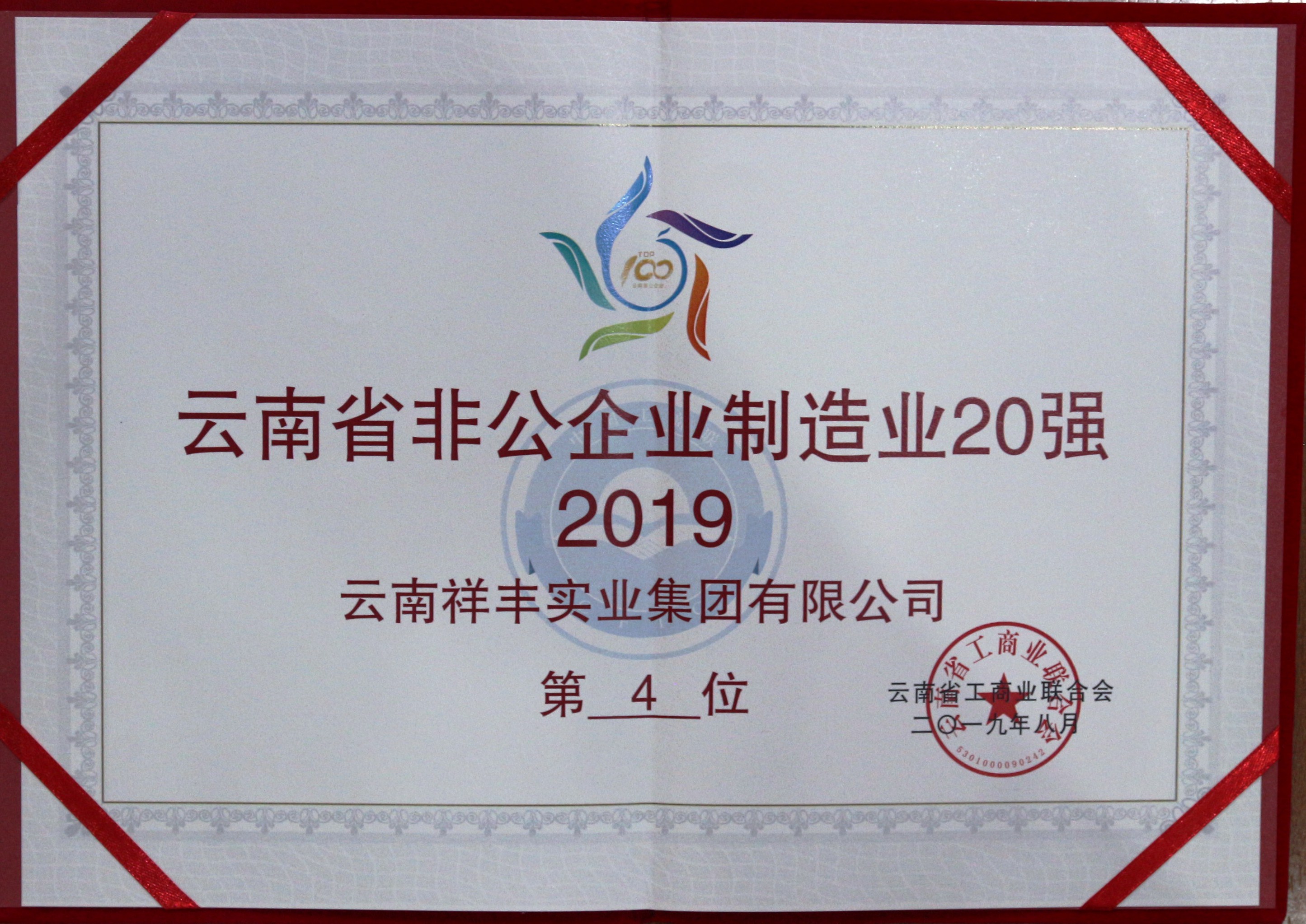 2019云南省非公企業(yè)制造業(yè)20強第4位