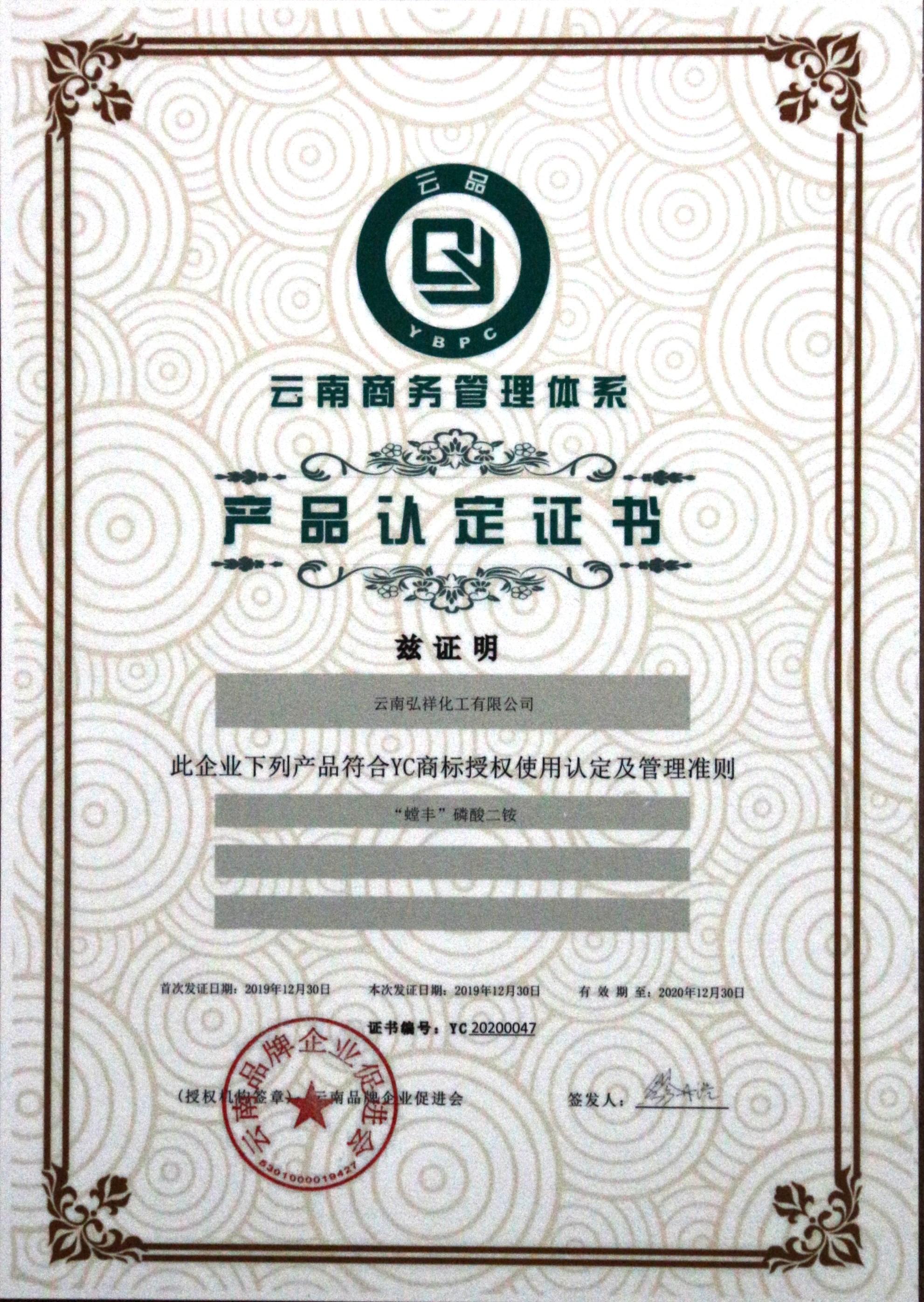 弘祥化工“螳豐”磷酸二銨符合YC商標授權(quán)使用認定及管理準則