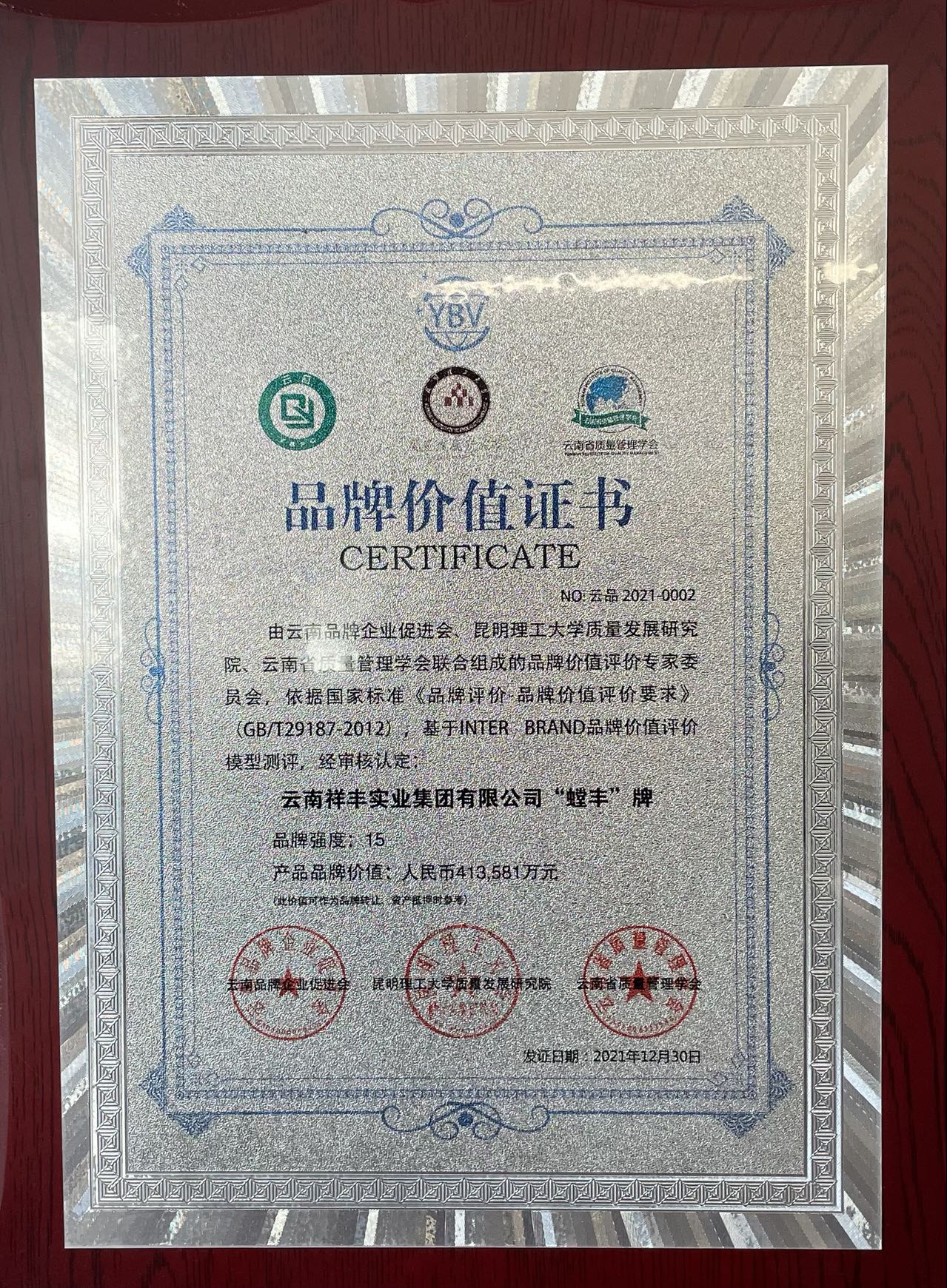 祥豐集團(tuán)“螳豐”牌品牌價(jià)值強(qiáng)度15