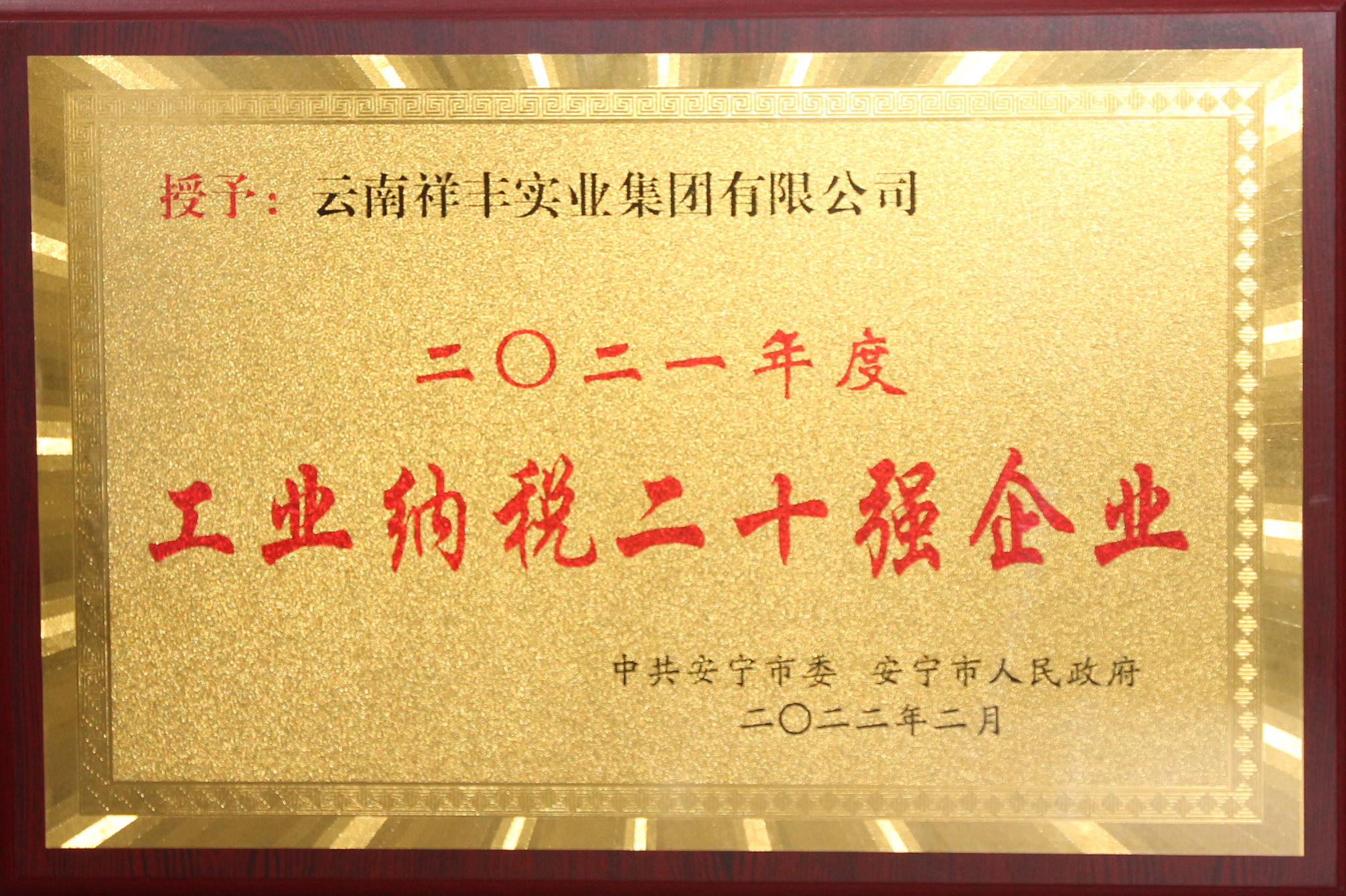 云南滇中新區(qū)2021年度工業(yè)產(chǎn)值突出貢獻(xiàn)企業(yè)(成杰、祥豐石化)