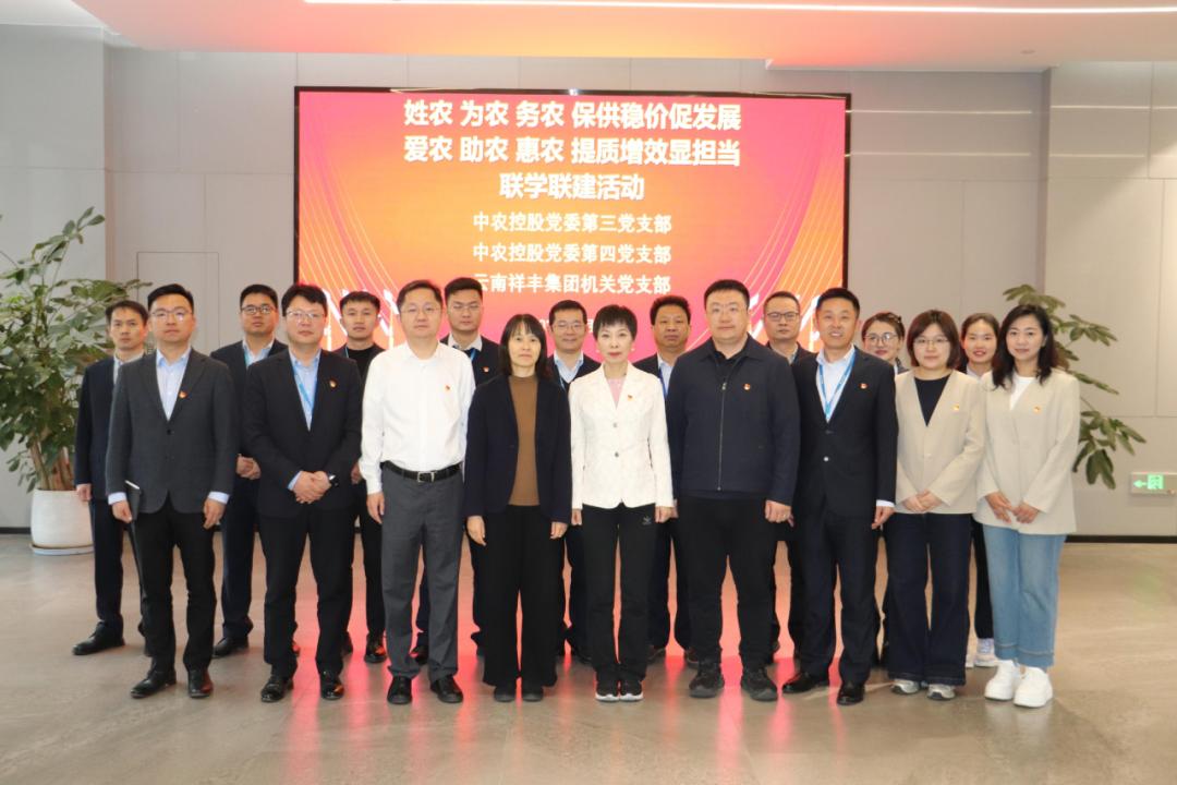 2025年4月2日上午,云南祥豐實(shí)業(yè)集團(tuán)黨支部與中農(nóng)集團(tuán)控股股份有限公司第三支部、第四支部開展聯(lián)學(xué)聯(lián)建主題黨日活動(dòng)。其間,雙方成功簽署戰(zhàn)略合作協(xié)議。祥豐集團(tuán)總經(jīng)理?xiàng)铥惙遥h委書記魯留定,工會(huì)主席劉國昌及相關(guān)業(yè)務(wù)部門與中農(nóng)控股黨委副書記、總經(jīng)理王秦燕,第三支部書記、磷復(fù)肥事業(yè)部部門經(jīng)理閆曉亮,第四支部書記、原料肥事業(yè)部部門經(jīng)理?xiàng)顕舻纫恍谐鱿?lián)學(xué)聯(lián)建暨簽約儀式。