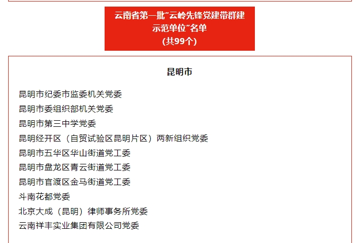 2013年7月,祥豐黨支部2011—2012年度"云嶺先鋒"工程被中共連然街道工作委員會(huì)評為"先進(jìn)基層黨組織";2013年7月,祥豐黨支部被中共安寧市委評為"基層黨建示范點(diǎn)";2013年7月,公司團(tuán)工會(huì)楊洪銘被推薦為"安寧市青年聯(lián)合會(huì)第二屆委員會(huì)委員";2013年7月,公司團(tuán)工委組織公司全體職工團(tuán)員青年開展"愛心水窖"捐款活動(dòng),祥豐集團(tuán)