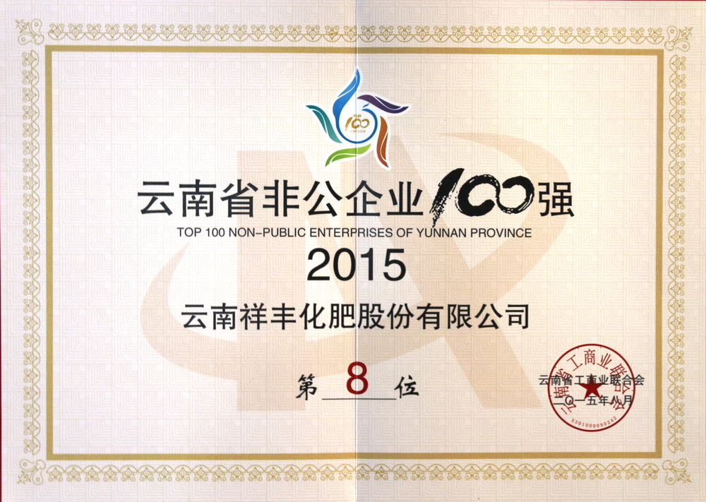 2015云南省非公企業(yè)制造業(yè)20強(qiáng)(第六名)