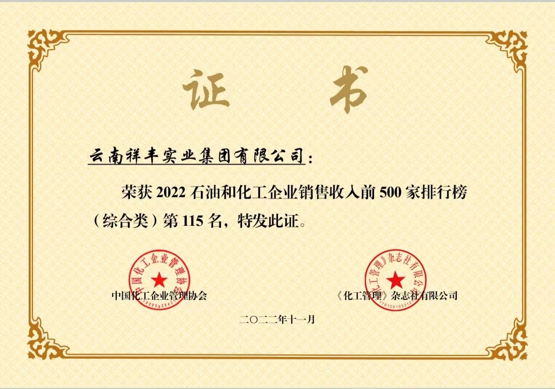 2022石油和化工企業(yè)銷售收入前500家(綜合類)第115名